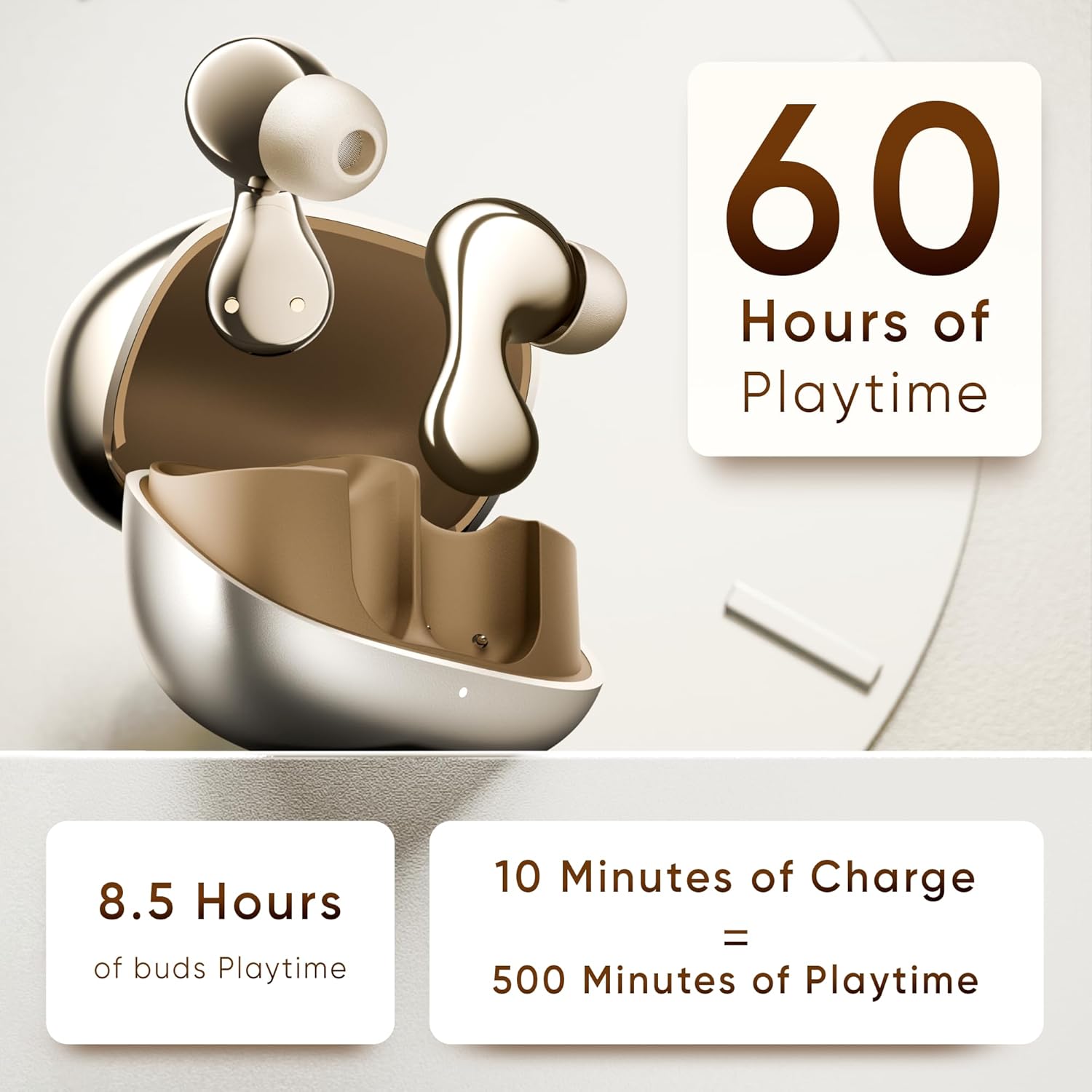 ✅ Battery & Playtime: It provides 8.5 Hrs of on-bud playtime and 60 Hrs of combined playtime. With just 10 minutes of charging, enjoy 500 minutes of playtime. The fast charge of these SuperPods comes with Type C charging.